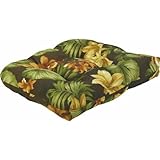 Wicker chair outdoor cushion Callie Coffee pattern. Update your wicker furniture with a comfortable cushion. Designed for traditional wicker chairs. 100% polyester fabric, 100% polyester fill. 500 hour UV rating. Clean with mild liquid detergent. Rinse with clean water and air dry. 20'' x 18'' x 4''.