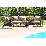 A Ewins exclusive, the Hampton Outdoor Premium Deep Seating Rocking Patio Set is skillfully crafted for utmost elegance and durability. Each piece is superbly finished with a Bronze Powder Coated finish that maintains its appearance for years to come. This set comes with 2 Stationary Rockers and a hard to find individual Rocking Loveseat. The Tempered glass coffee table and matching side table are great for entertaining. 2 Outdoor throw Pillows complete this exclusive outdoor patio set.