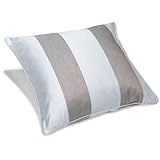 Finish a well-dressed bed with a square accent pillow in this striking square pillow cover from Pinzon. Part of the Fleur Jacquard collection, a wide, two-tone jacquard stripe pattern decorates the pillow cover to beautiful effect. The simple style of the pillow cover brings elegance into traditional and transitional bedrooms alike. Made in Portugal, the pillow cover is crafted out of pure Egyptian cotton for strength and softness, while its four-over sateen weave lending the fabric greater smoothness and luster. Blue piping trims the self reversible cover. The pillow cover removes for machine washing and drying. For the best results, wash in cool water. An assortment of different sized Fleur Jacquard shams are available to mix and match with the square pillow cover. The square pillow cover measures 20 inches by 20 inches.