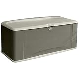 Sit down and enjoy the uncluttered view after you've picked up the deck, patio or yard and stored all the toys, tools, grilling accessories away inside this deck box from Rubbermaid. Equipped with a comfy seat molded into its hinged lid, Rubbermaid's extra large deck box is a durable, well thought-out storage unit great for storing a wide variety of items indoors or out. With inner dimensions of 56-1/2 by 21 by 22-1/2 inches (width by depth by height), the unit nestles into the deck corner without protruding over the rail and offers 16.2 cubic feet of storage space.Its lockable lid (lock not included) keeps little hands away from sharp grilling accessories and fuels. And, assembly is quick and easy with panels that snap together in minutes. Its sandstone colored lid and floor and olive steel colored panels blend with just about any venue. The hinged lid design ensures great accessibility and is built to last. Like all Rubbermaid deck boxes, this one is maintenance-free and crack-resistant in cold temperatures. There's no easier way to tidy up the deck, garage, shop, patio or greenhouse without eating up valuable floor space!