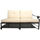 Durable yet surprisingly lightweight, this cast aluminum loveseat provides relaxing, deep-seated comfort. Highly attractive and very inviting, this Left Arm Loveseat is specially designed to pair with the Right Arm Loveseat and Sectional Corner Lounger from Strathwood's Falkner collection to form a complete sectional set. These along with other pieces from the fully coordinating Falkner Lounge Collection make it easy to create a fashionable and functional patio retreat. The loveseat is constructed of wide, thin strips of black, powder-coated aluminum. Ideal for use in outdoor furniture, cast aluminum is heavier and sturdier than standard aluminum but much lighter than cast iron. It's also quite resistant to chipping, fading, and rusting. The slat design on the seat allows for maximum aeration and the criss-cross design on the back provides good support and makes for a stylish, good-looking view of the loveseat from the back. Overall, the loveseat measures 32-1/2 inches high by 34-3/4 inches deep by 57-1/2 inches wide and weighs 38.6 pounds. The loveseat arrives completely assembled for immediate enjoyment.