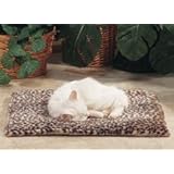 Inspired by a cat's desire for warmth and comfort, this pad works without wires or batteries. Can serve as a cat bed. An innovative thermal core actually reflects your cat's body heat back to her. Great for kittens, aging cats, arthritic cats, or any cat in fact - they'll seek it out immediately. Two-sided faux fur bed is machine washable. Tan Leopard. 19" x 23".