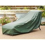 Our CoverMates Classic chaise lounge covers are the right choice for the protection of your chaise lounge furniture. These patio lounge coversare available in the following dimensions:74"L x 34"W x 32"H and80"L x 27"W x 30"H which will fit standard sizes and 84"L x 34"W x 34"H and 87"L x 31"W x 40"H to fit larger sizes of chaise lounge chairs and wicker chaise lounges. We even offer80"L x 60"W x 34"Hdouble chaise lounge covers too!Our Classic chaise lounge covers are constructed from hunter green, commercial grade vinyl. The vinyl is laminated to a layer of polyester lining to form a thick 12 mil water-resistantweather barrier between your patio furniture investment and the worst Mother Nature can dish out! Each cover is also equipped with a mesh vent as well as an elastic bottom to keep the cover in place at all times. Patio lounge coversare important for many reasons.They keep moisture away from your wrought iron, aluminum, powder coated and teak patio furniture.They also keep dust and dirt, tree sap and bird droppings away. Chaise lounge covers also prevent the sun's harmful rays from discoloring and fading your furniture and cushions.Chaise lounge covers can be used on lounges that lay flat. However, to prevent standing puddles, angle the back, if possible, to allow the moisture from rain, snow, dew, etc. to roll off the cover onto the ground.Check out our impressive two-year warranty on our Classic chaise lounge covers.Note of Interest: chaise lounge is French and means "long chair". Chaise is actually pronounced "shez".