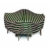 Protect your outdoor patio table and chairs from rain, snow, dust, dirt, and overhead birds. The Two Dogs Designs 84-Inch Round Table and Chairs Cover is made from heavyweight 600-denier polyester that resists water and harsh weather conditions. Gathered elastic Velcro tabs secure around the bottom to stop heavy winds from displacing it. The PVC lining protects the furniture, and the exclusive color infusion process prevents the cover from fading. The green-striped appearance enhances your patio, backyard, or deck area, making the cover attractive, as well as practical. It measures 84 inches in diameter and 27 inches high. It fits a 48-inch or 54-inch round table with chairs.