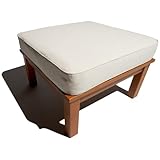 Handsomely designed and built to last, this cushioned ottoman table offers a modular style that can be used on its own or in concert with other pieces from the Strathwood Balboa outdoor furniture collection. It's made of a dense and highly durable hardwood with a fine-sanded, oil-stained finish in a warm, mahogany brown tone. The ottoman features blocky, square chair footings and a wide, slatted construction. At 13 inches high, it's just the right height for using as a side table. Add the cushion, and it adds extra length to the collection's corner or center chairs for stretching out your legs. The ottoman measures 27-1/2 inches square and weighs 30.9 pounds. Assembly is easy, with all parts and hardware included. The ottoman comes with a 4-1/2-inch-thick cushion with a durable, heavy polyester canvas cover in a natural tone, as well as two 4-1/2-inch-thick back cushions with Velcro fasteners that loop through the slats.