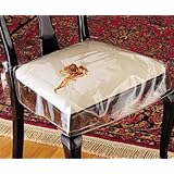 An easy way to keep your dining chairs looking like new.These transparent heavy duty vinyl seat covers protect and display the beauty of your dining room chair upholstery.No more worries about spilled wine or messy food -chair protectors take the stress out of eating and drinking for children and adults.Your chair seats will stay stain-free so you can relax and enjoy your meals! Spills and drips wipe off easily, letting you save on cleaning bills.Each chair protector is made of durable, thick, clear vinyl and designed for years of use. Fits most chair seats up to 21" x 21". Comes as a set of 2 seat protectors.Dimensions: 26" x 26" each. These covers can be taped or stapled to your chairs. .